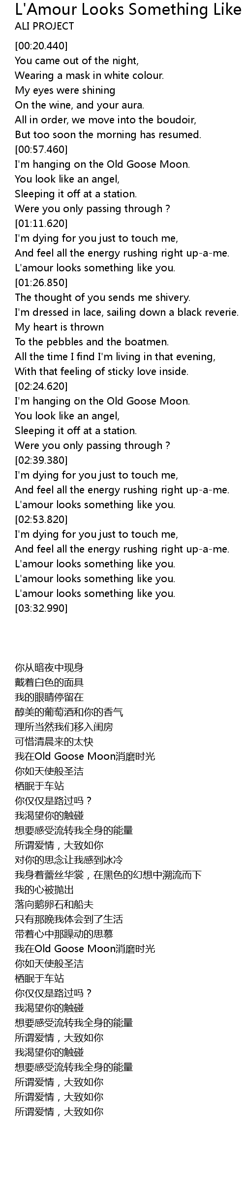 | [03:02.020] | L'amour looks something like you. |