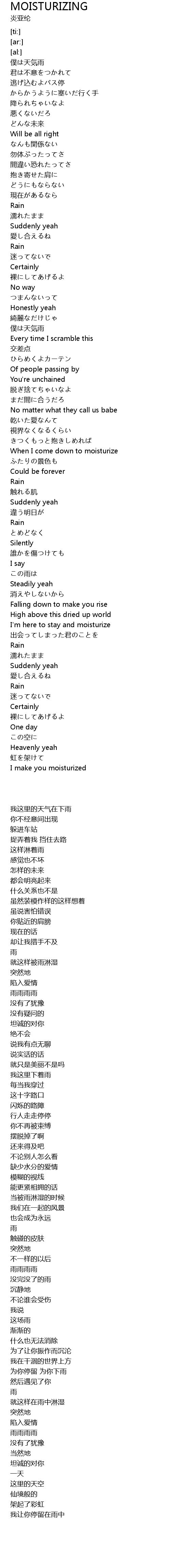 | Song | MOISTURIZING |