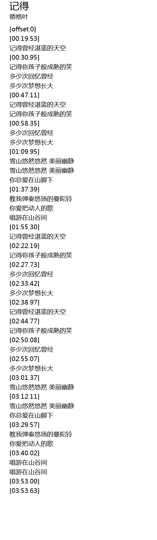 | [03:14.13] | 雪山悠然悠然 美丽幽静 |