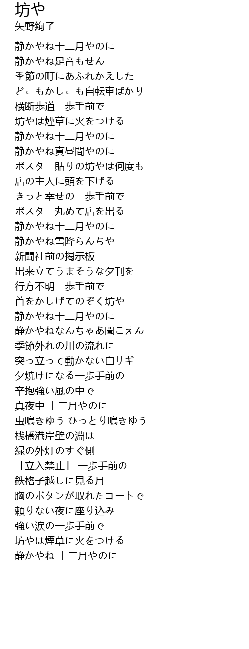 | 静かやね十二月やのに | |