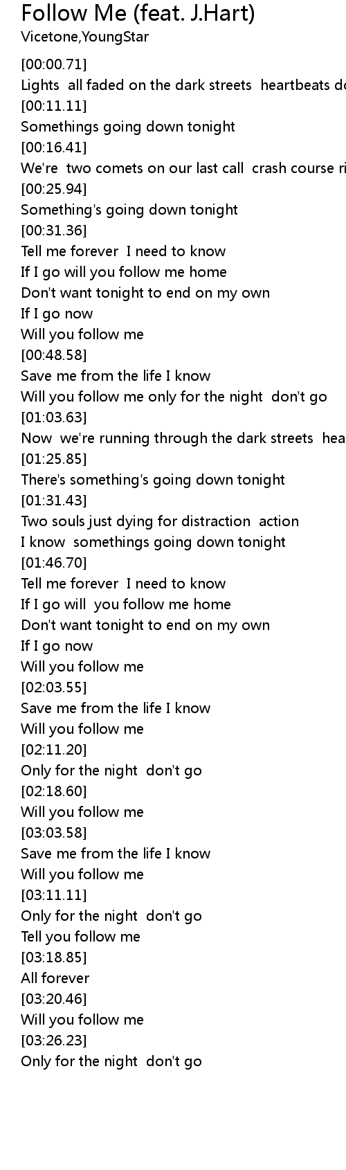 | [00:03.22] | Lights all faded on the dark streets heartbeats don't lie |