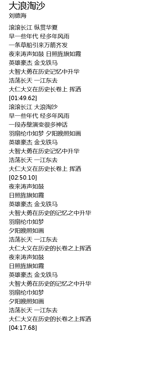 [01:50.67] gǔn gǔn cháng jiāng dà làng táo shā