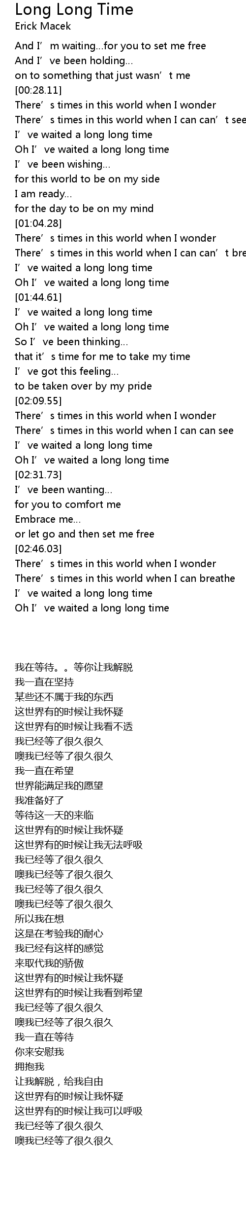 | [02:58.29] | I' ve waited a long long time |