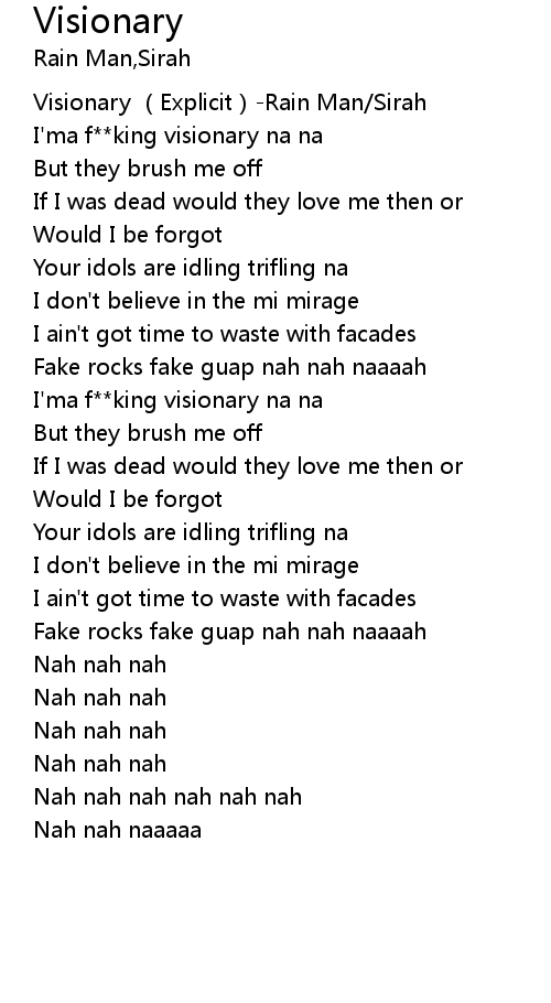 | [00:00.348] | Visionary Explicit Rain Man Sirah |