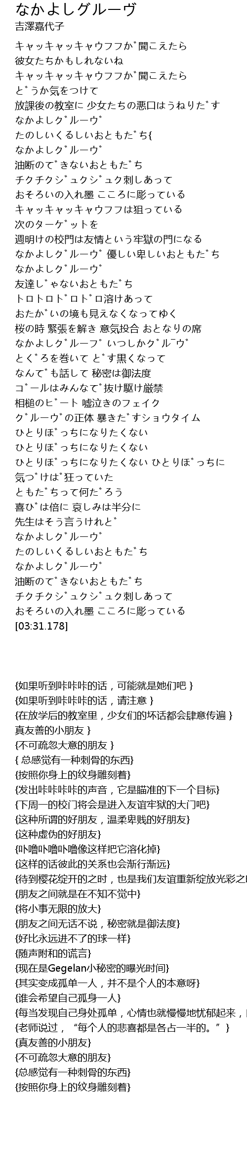 | [02:50.016] | なかよしグルーヴ たのしいくるしいおともだち |
