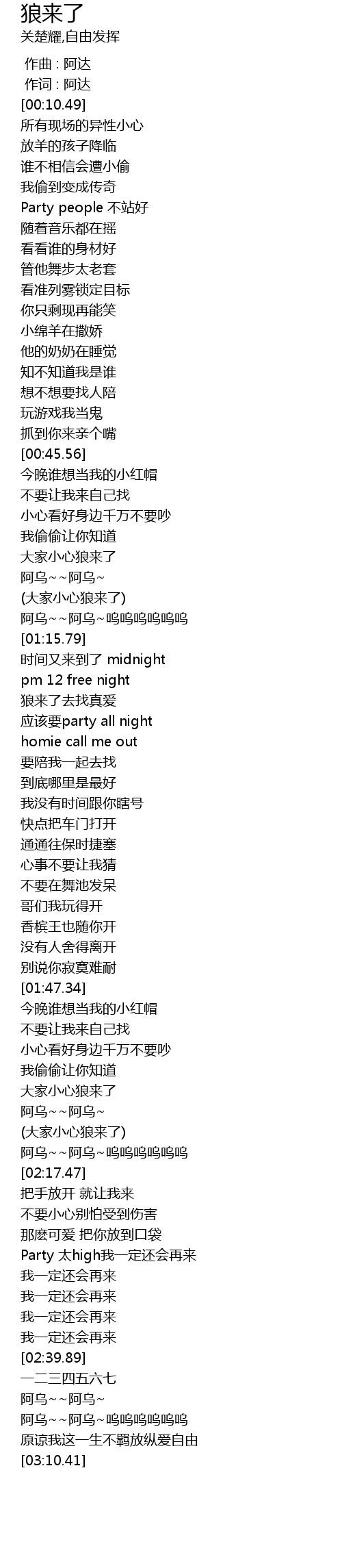 | [02:00.82] | 大家小心狼来了 |