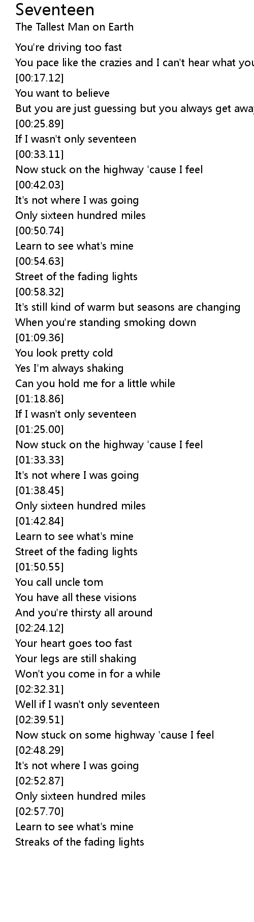 Well if I wasn't only seventeen |