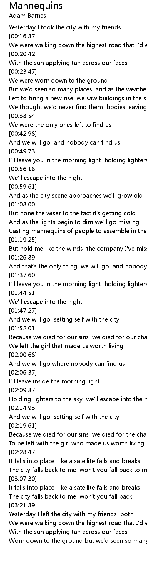 [03:01.02] The city falls back to me won't you fall back to me