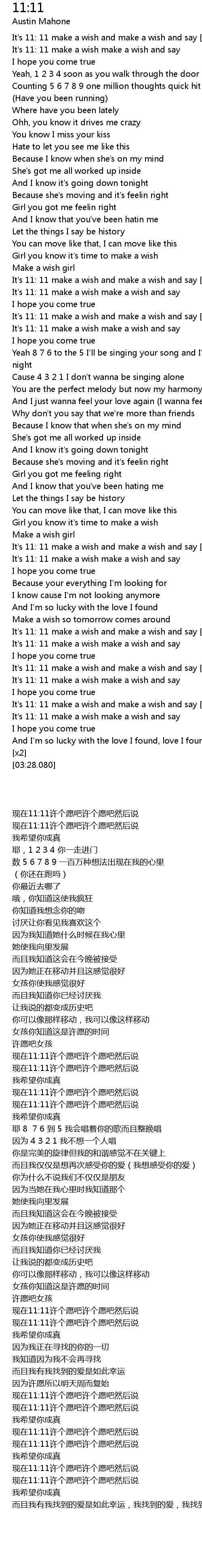 | [00:04.290]It's 11: 11 make a wish and make a wish and say [x2] |
