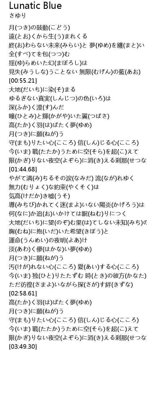 | [00:49.09] | 見失(みうしな)うことない 無限(むげん)の藍(あお) |