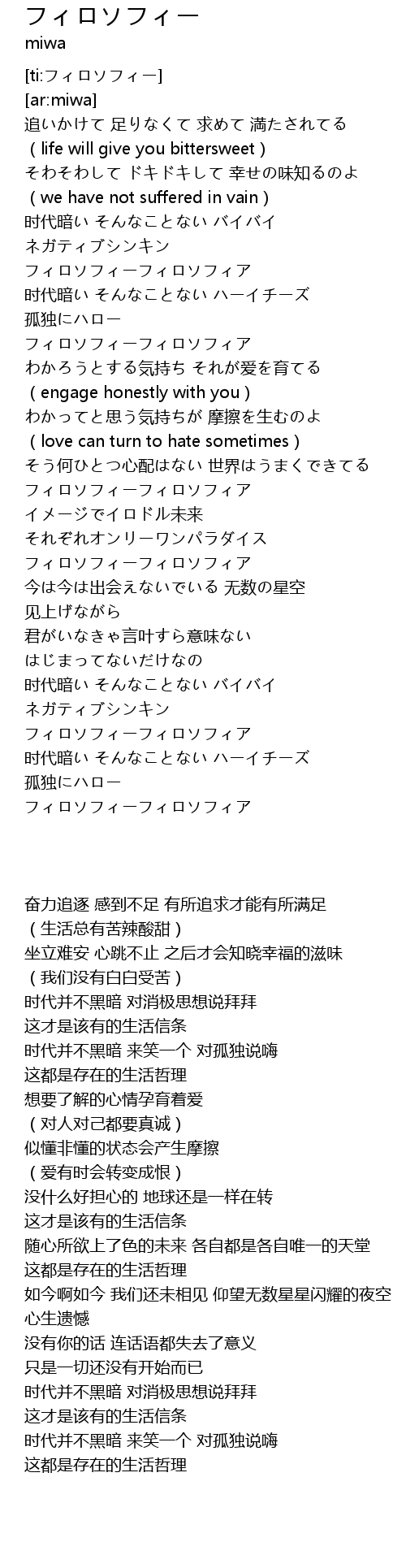 | [00:50.84] | フィロソフィーフィロソフィア |