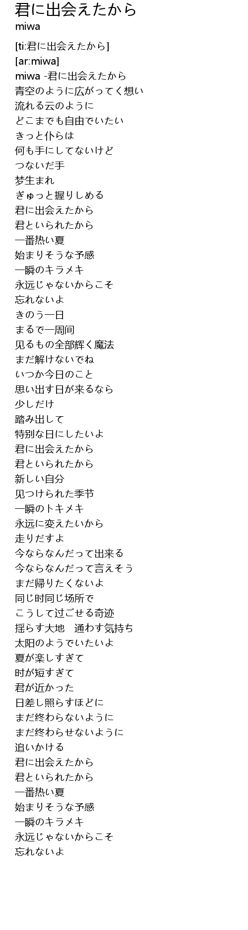 [ti:君に出会えたから] |