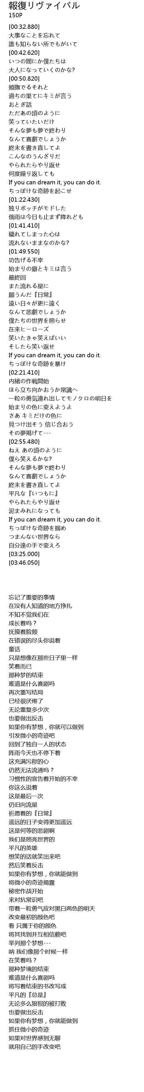 | [01:19.910] | ちっぽけな奇跡を起こせ |