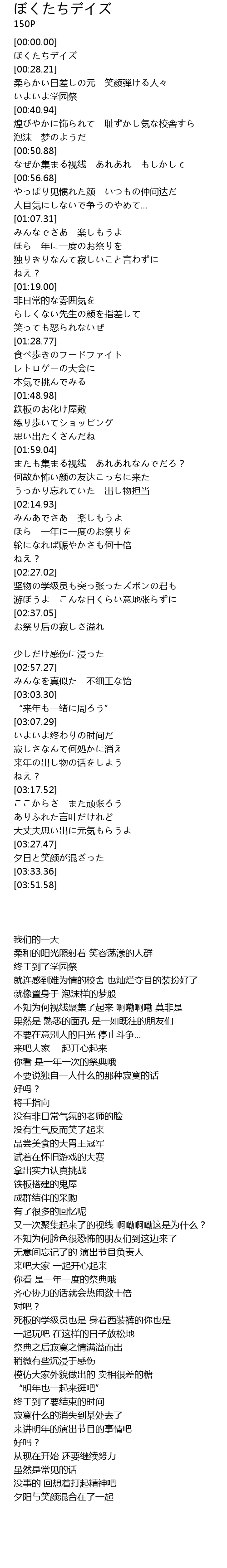 | [00:52.11] | なぜか集まる视线 あれあれ もしかして |