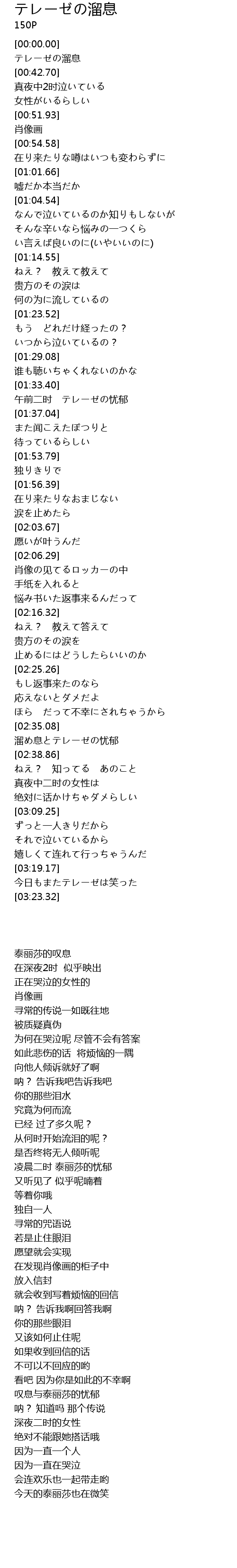 | [01:34.43] | 午前二时 テレーゼの忧郁 |
