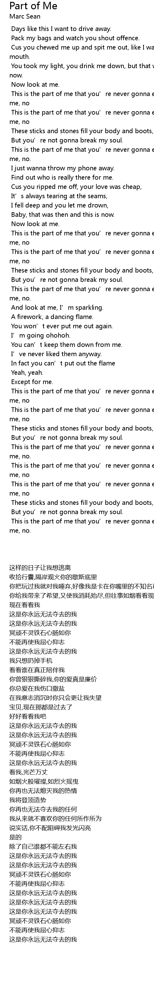 | [00:51.40] | This is the part of me that you’re never gonna ever take away from me, no |