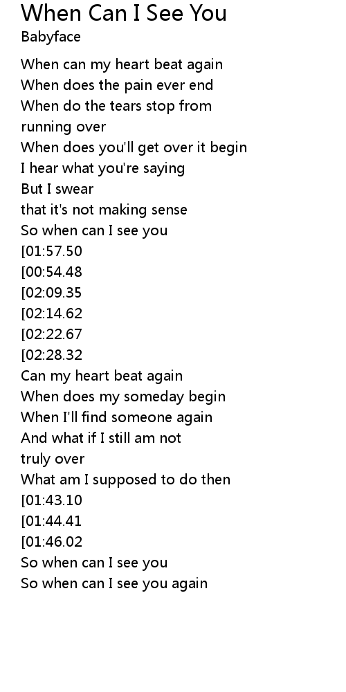 | [03:16.49][02:22.67][01:14.15] | And when can I see you |
