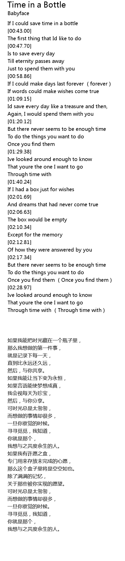 | [00:38.32] | If I could save time in a bottle |