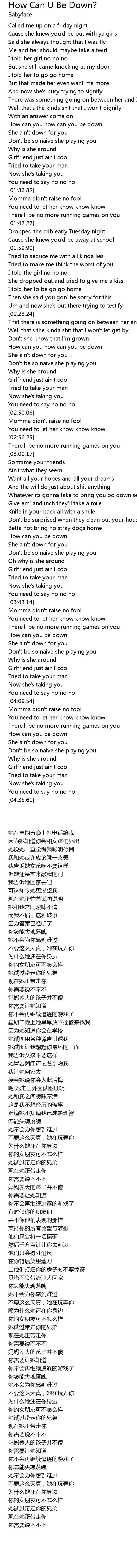 | [03:26.36] | How can you be down |