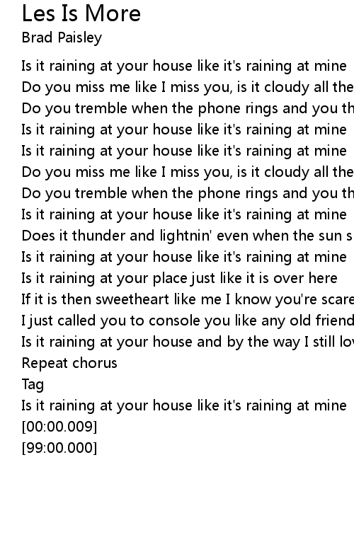 Is it raining at your house and by the way I still love you |