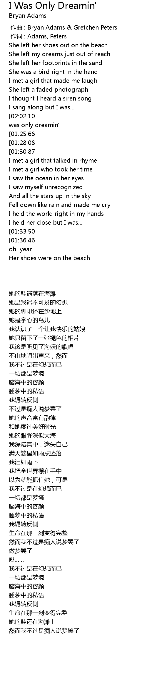 | [00:00.00] | zuo qu : Bryan Adams Gretchen Peters |