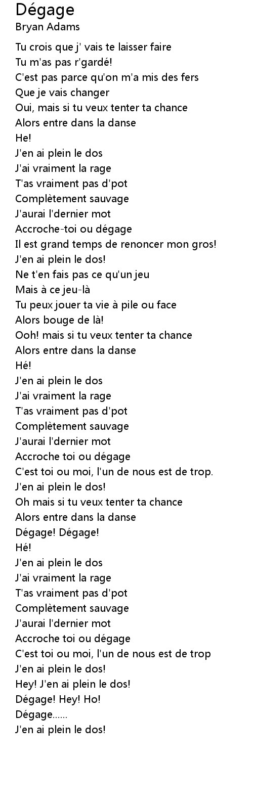 | Song | Dégage |