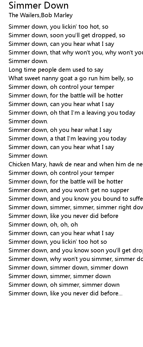 Simmer down, simmer down, simmer down |