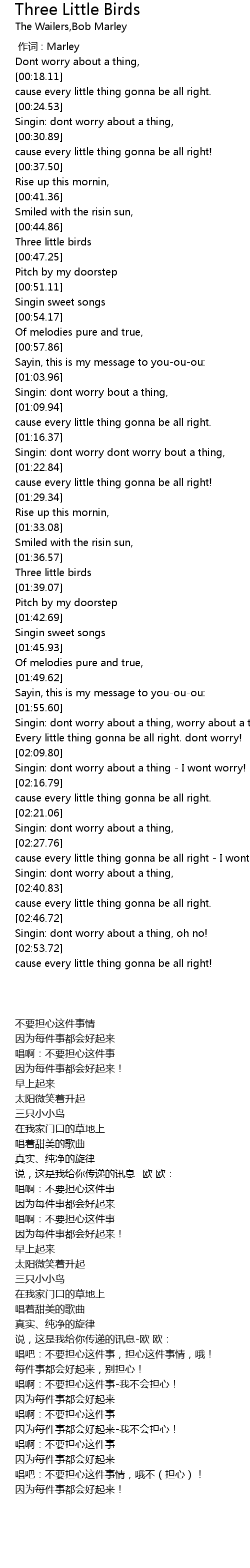 | [01:38.01] | Three little birds |