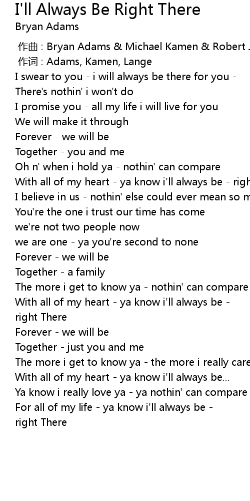 | [00:13.45] | I swear to you - i will always be there for you - |