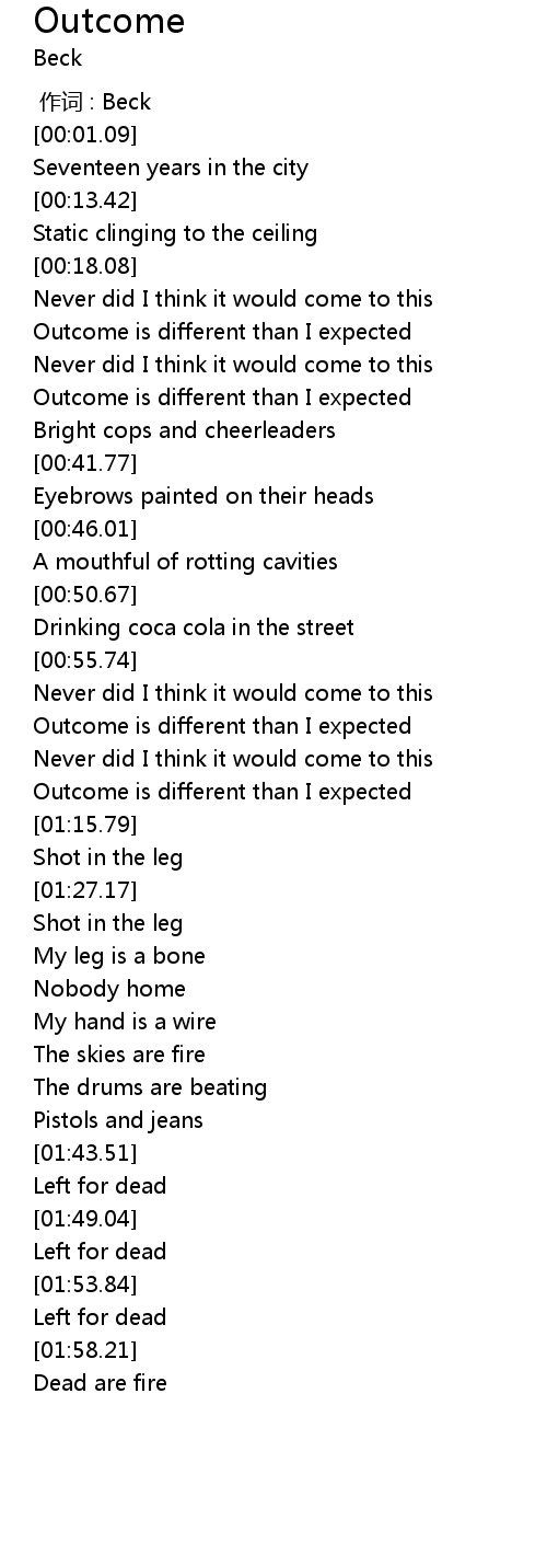 | [00:00.00] | 作词 : Beck |