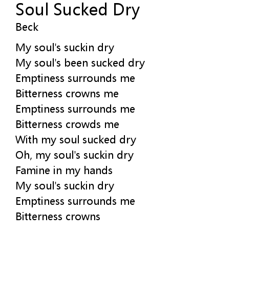 | Oh, my soul's suckin dry | |