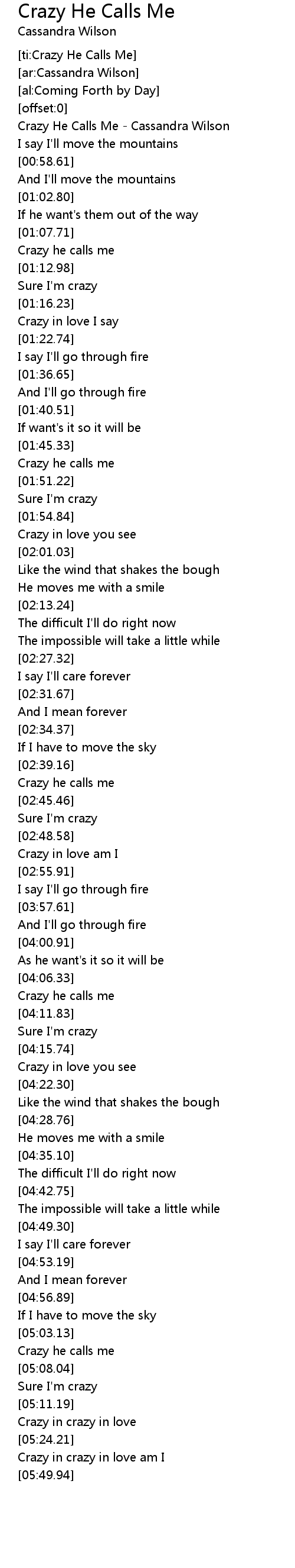 [ti:Crazy He Calls Me] |