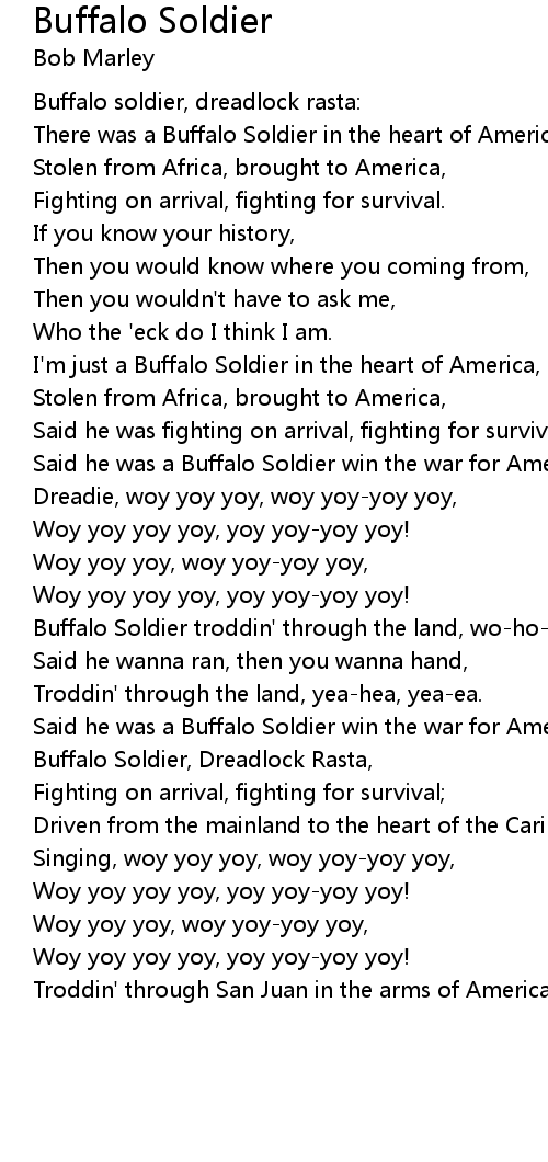 Buffalo Soldier troddin' through the land, wo-ho-ooh! |