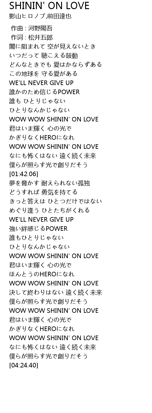 | [03:45.99] | WOW WOW SHININ' ON LOVE |