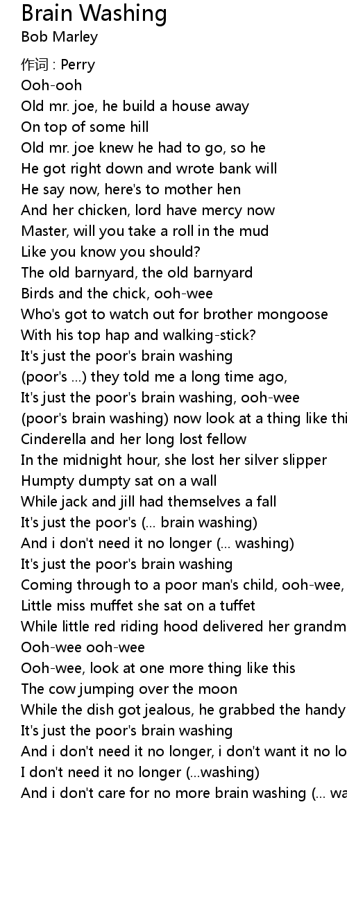 | And i don' t care for no more brain washing ... washing ... |