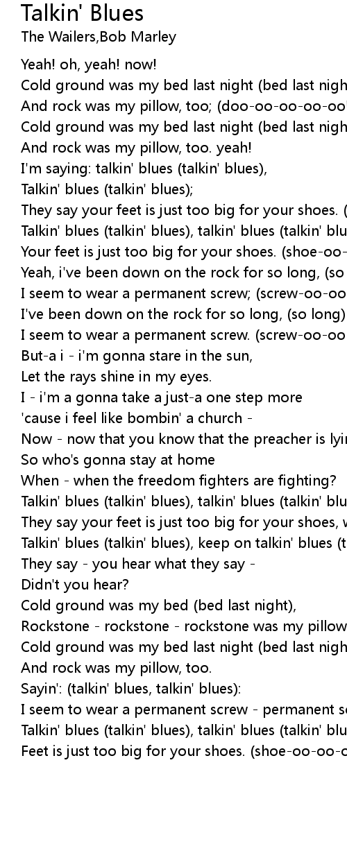 Talkin' blues (talkin' blues), keep on talkin' blues (talkin' blues); |