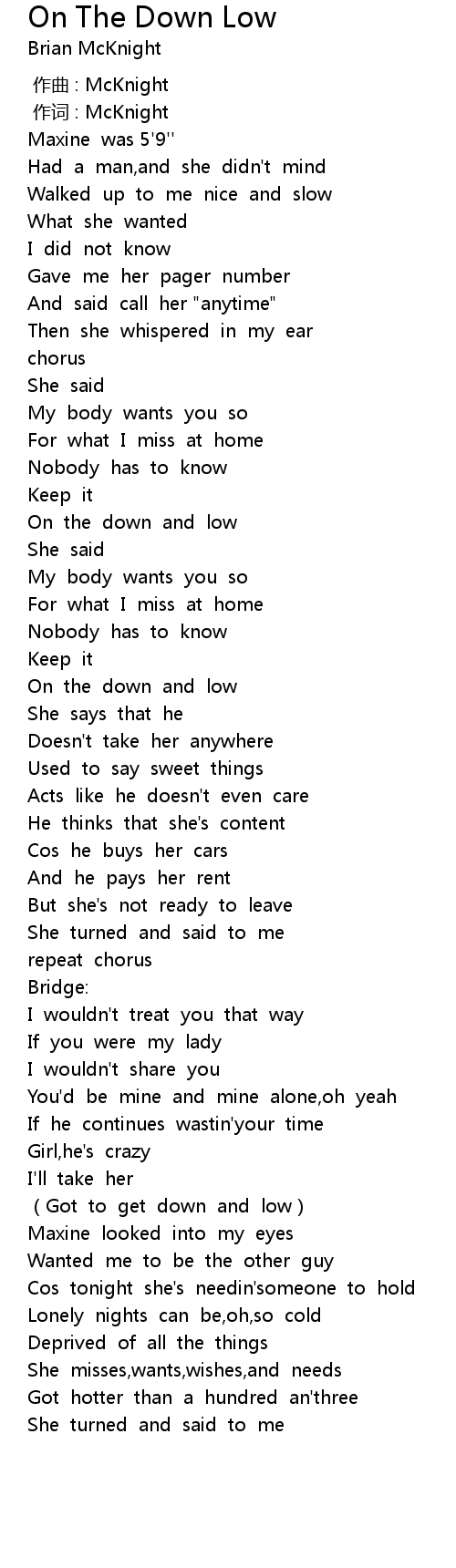 | [00:49.66] | On the down and low |