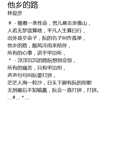 | 他乡的路,酸风冷雨来陪伴, | |