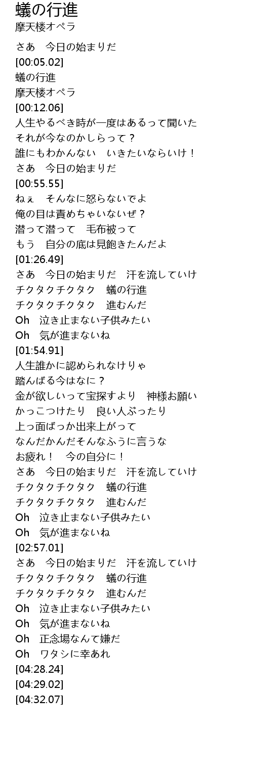 | [02:32.07] | チクタクチクタク 蟻の行進 |