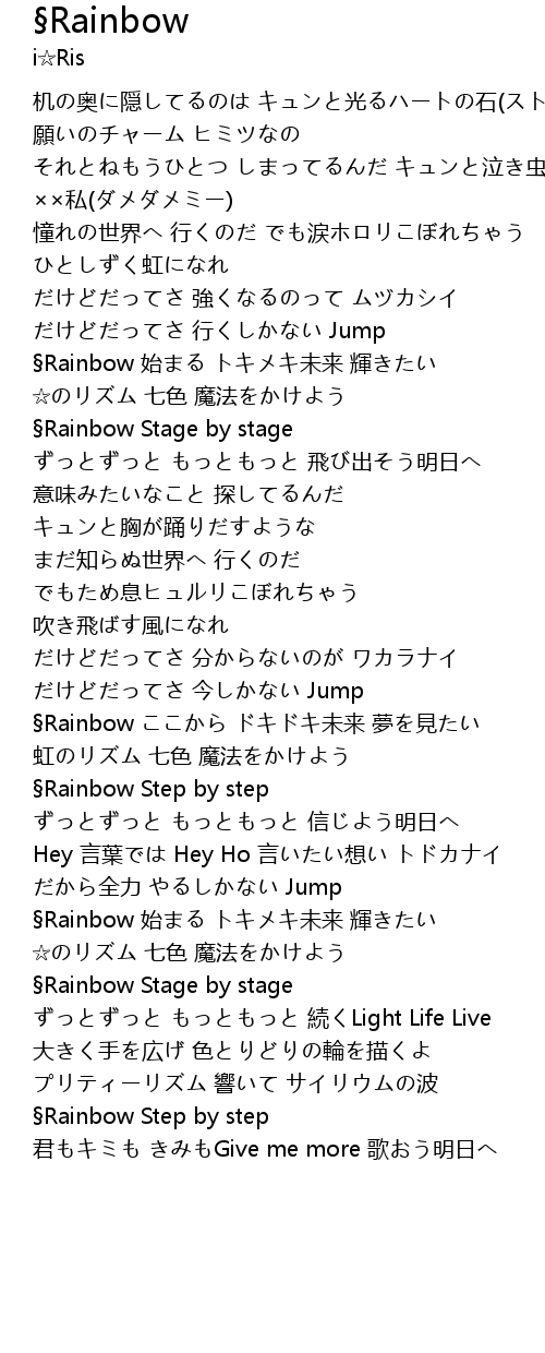 | §Rainbow ここから ドキドキ未来 夢を見たい | |