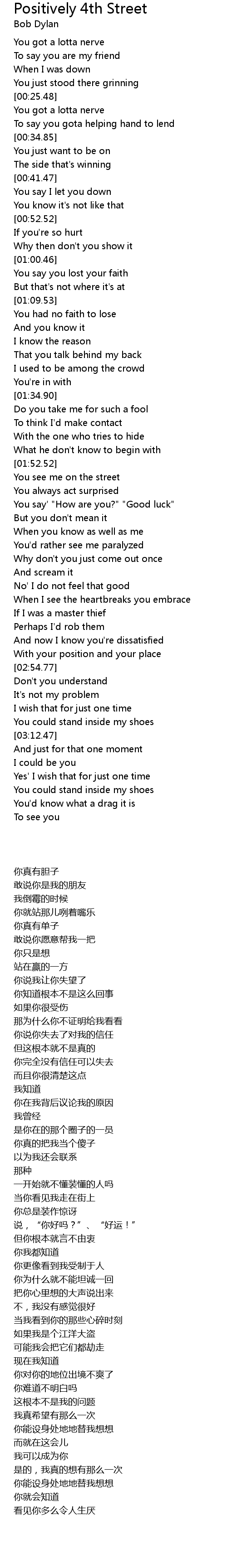 | [01:55.21] | You see me on the street |