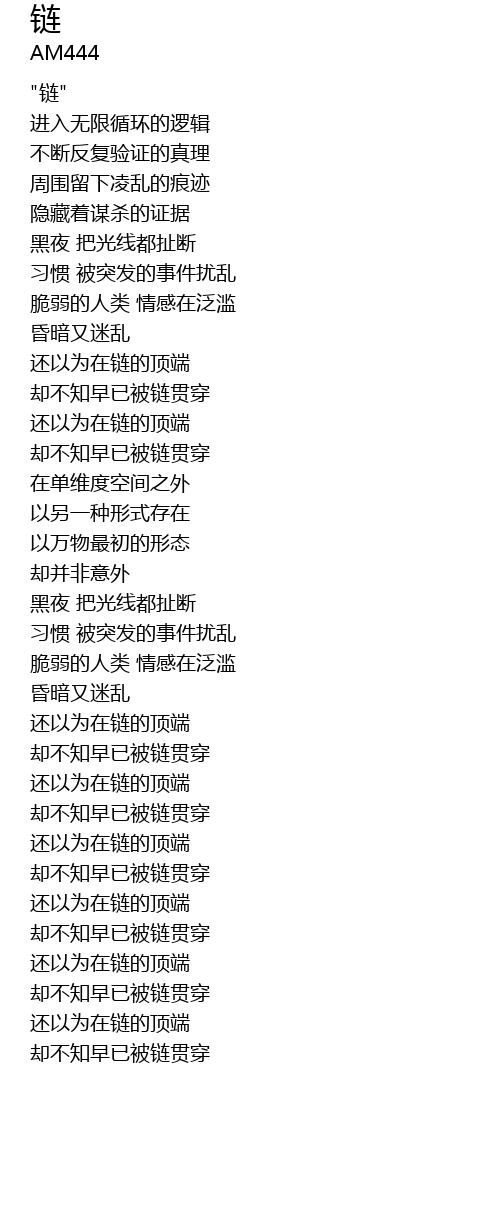| [04:36.39] | 却不知早已被链贯穿 |