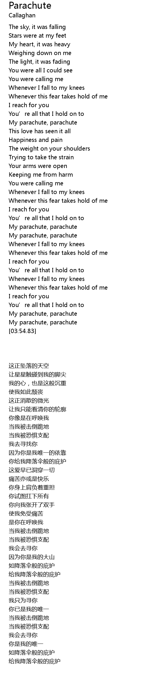 | [03:56.63] | My parachute, parachute |