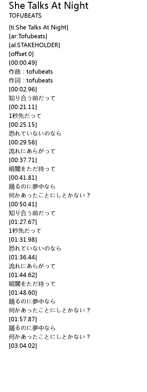 [ti:She Talks At Night] |