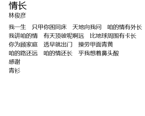 | 我讲咱的情 有天顶彼呢啊远 比地球周围有卡长 | |