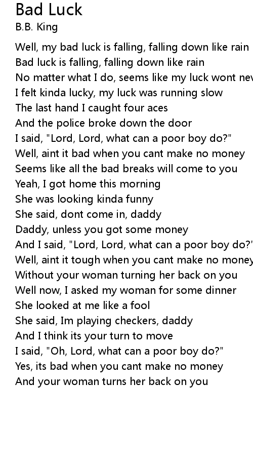 Well, my bad luck is falling, falling down like rain |
