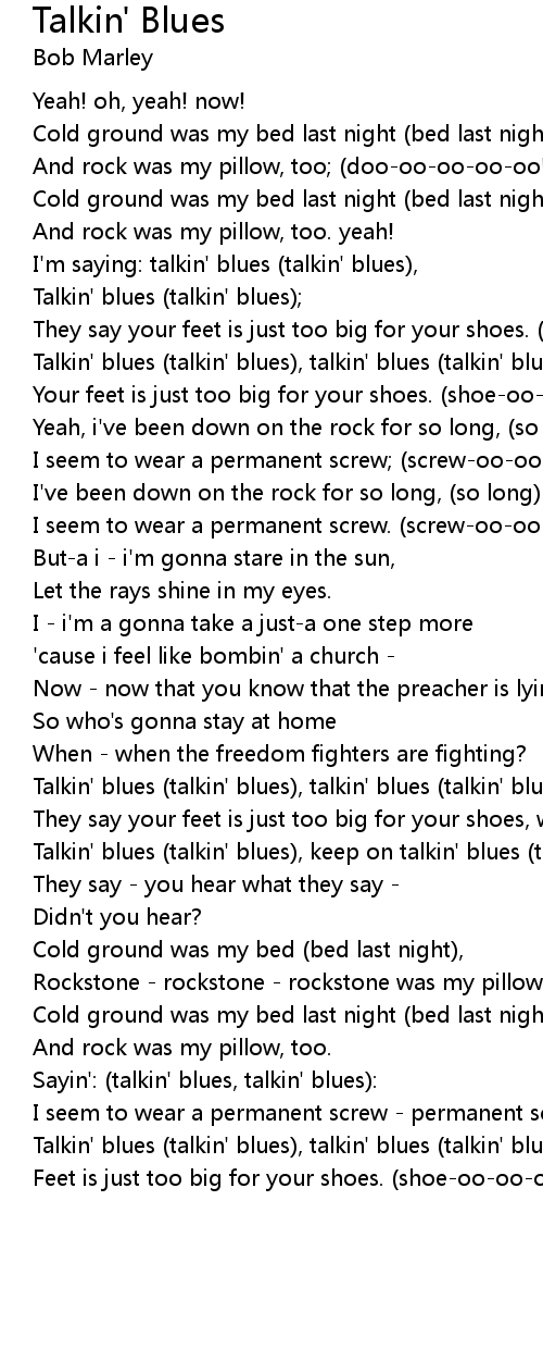 Talkin' blues (talkin' blues), keep on talkin' blues (talkin' blues); |