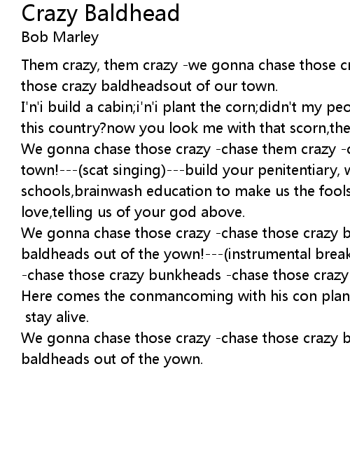 Them crazy, them crazy -we gonna chase those crazybaldheads out of town;chase those crazy baldheadsout of our town. |