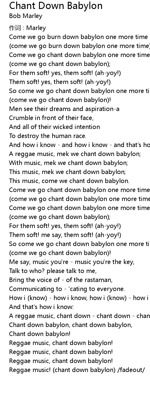 | A reggae music, chant down - chant down - chant down babylon, | |