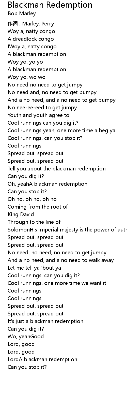 | Song | Blackman Redemption |